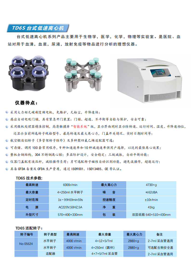 • 簡   稱:TD6S台式低(dī)速離(lí)心機(jī)