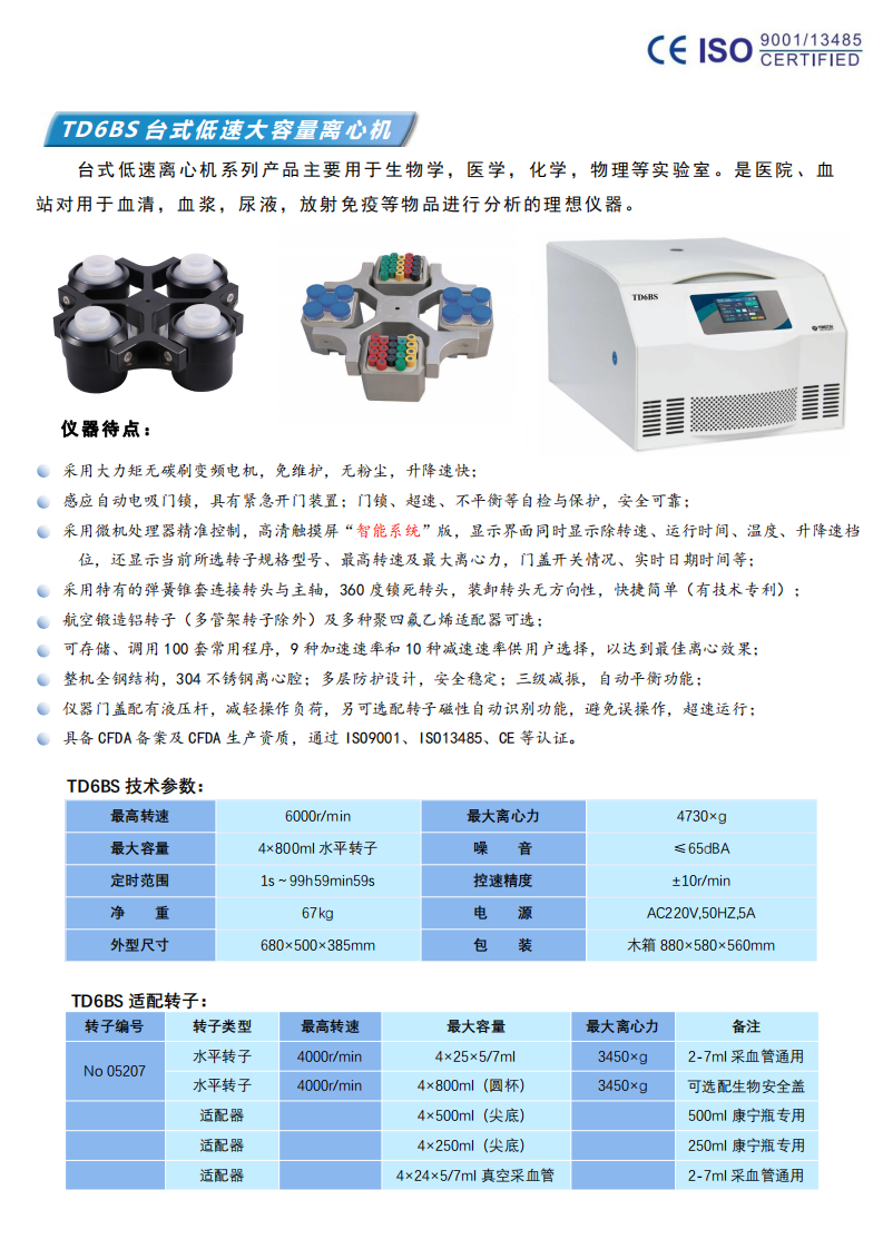 • 簡   稱:TD6BS台式低(dī)速大(dà)容量離(lí)心機(jī)