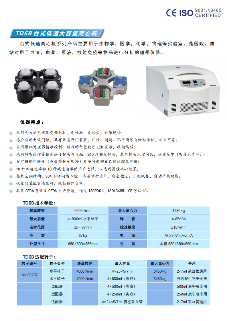 • 簡   稱:TD6B台式低(dī)速大(dà)容量離(lí)心機(jī)