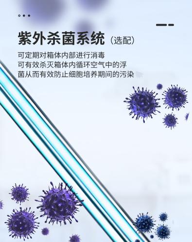 ● 可(kě)定期對(duì)箱體(tǐ)內(nèi)部進行(xíng)消毒,可(kě)有(yǒu)效殺滅箱體(tǐ)內(nè™i)循環空(kōng)氣中的(de)浮菌,從(cóng)而有(yǒu)效防止細胞培養期間(jiān)的(de)污染。
